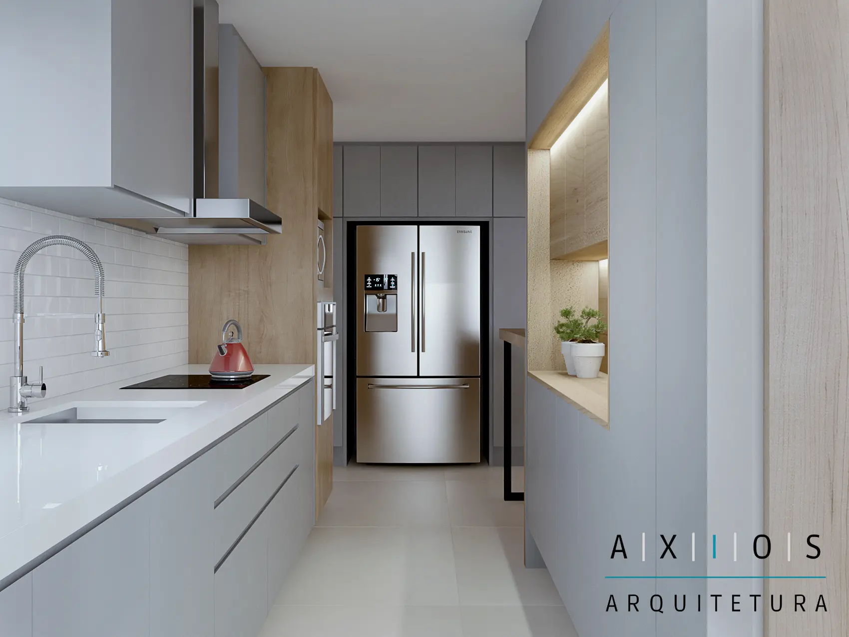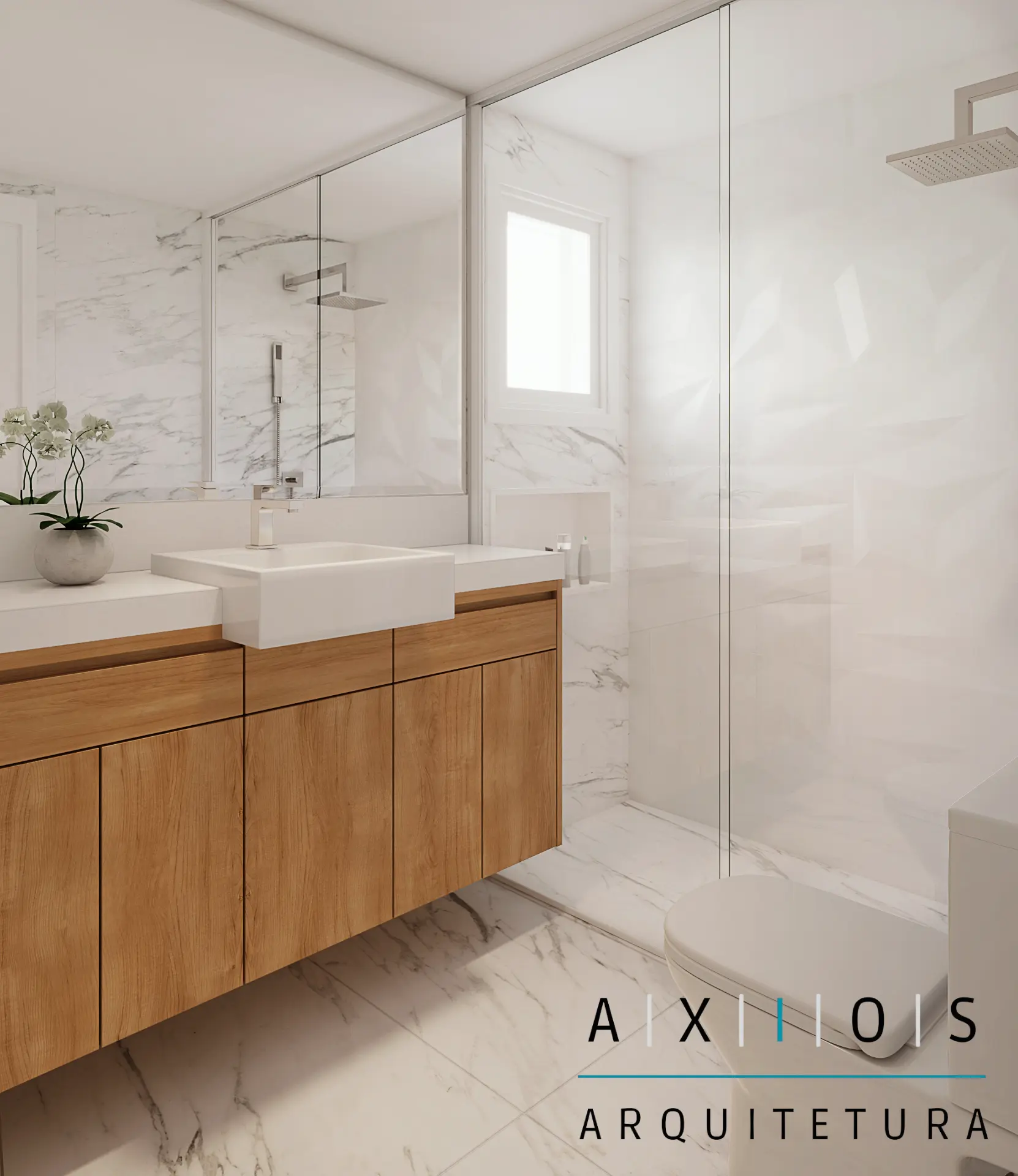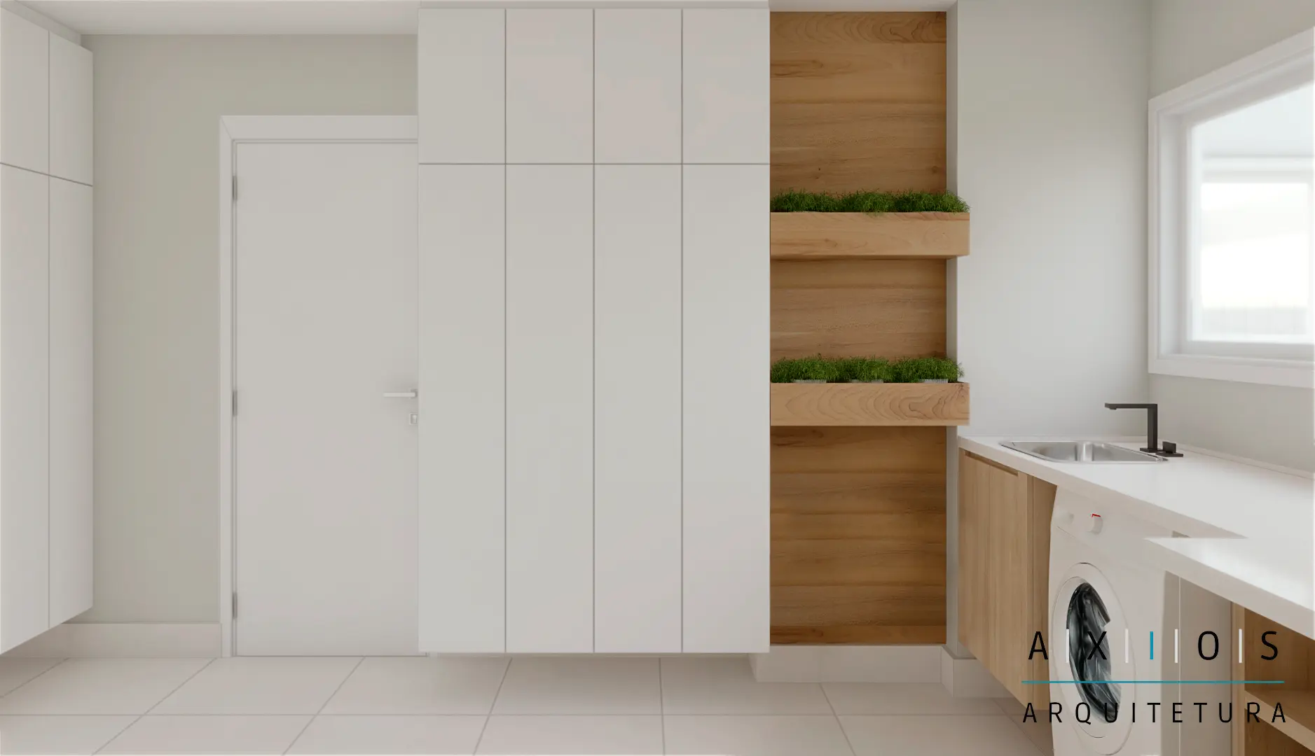 O design de interiores seguiu uma linha contemporânea, utilizando texturas amadeiradas e elementos em metal para criar um contraste elegante. Cada ambiente foi pensado para oferecer o máximo de ergonomia e conforto térmico aos moradores.