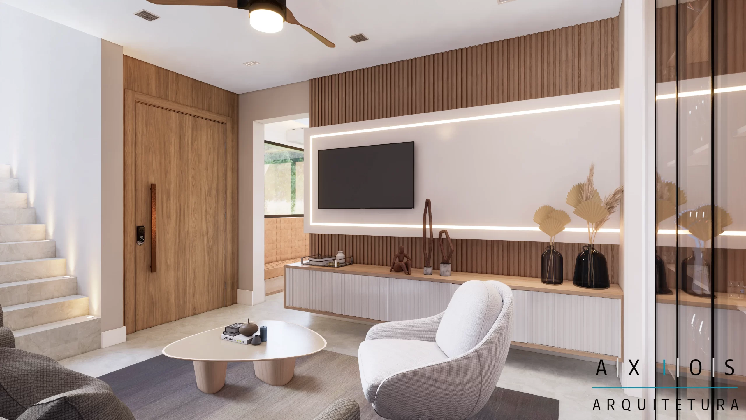 A estética externa foi renovada com texturas modernas e um projeto de paisagismo que integra a natureza à arquitetura. Internamente, os espaços foram redistribuídos para ganhar amplitude e melhor ventilação cruzada.